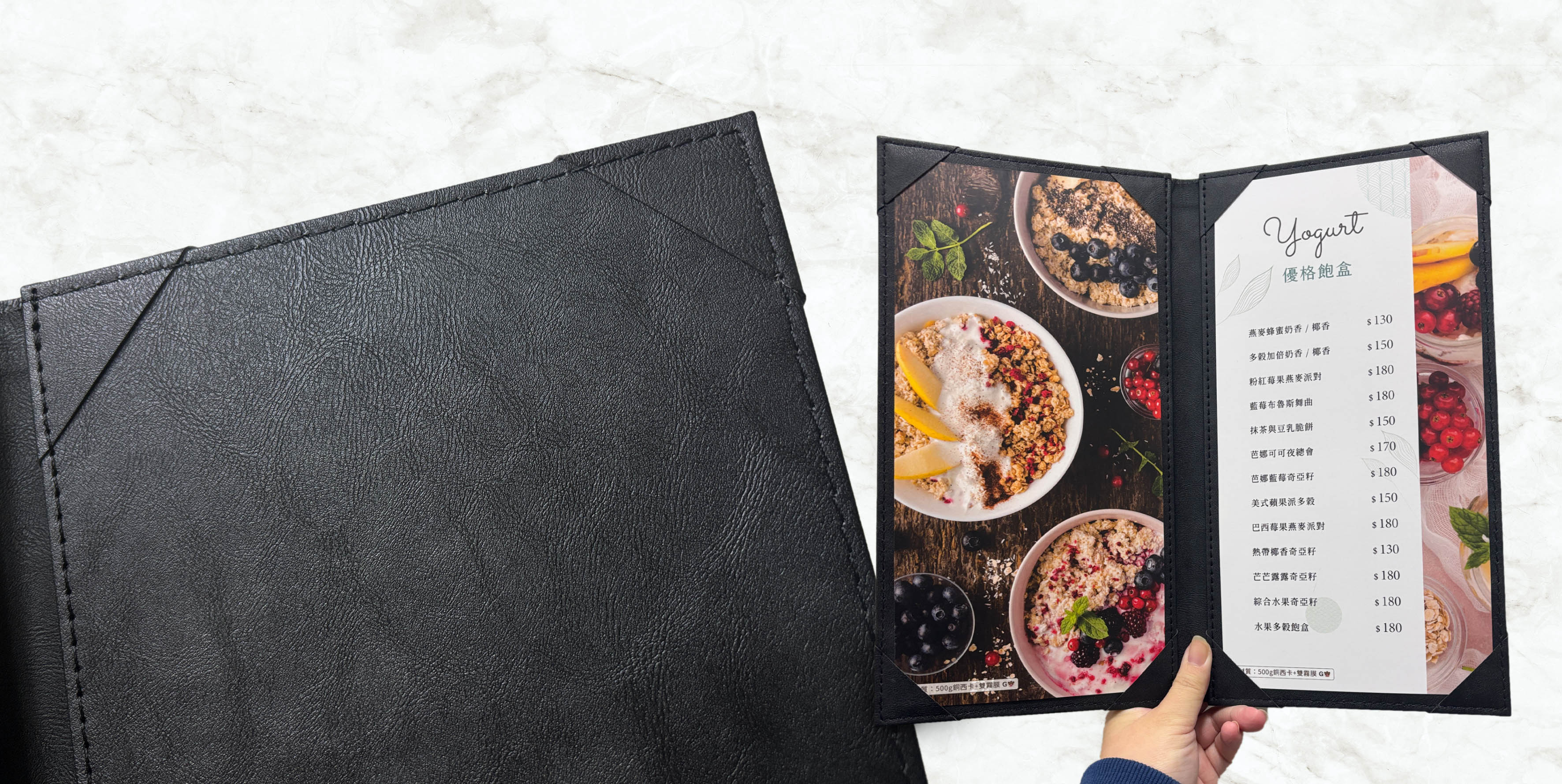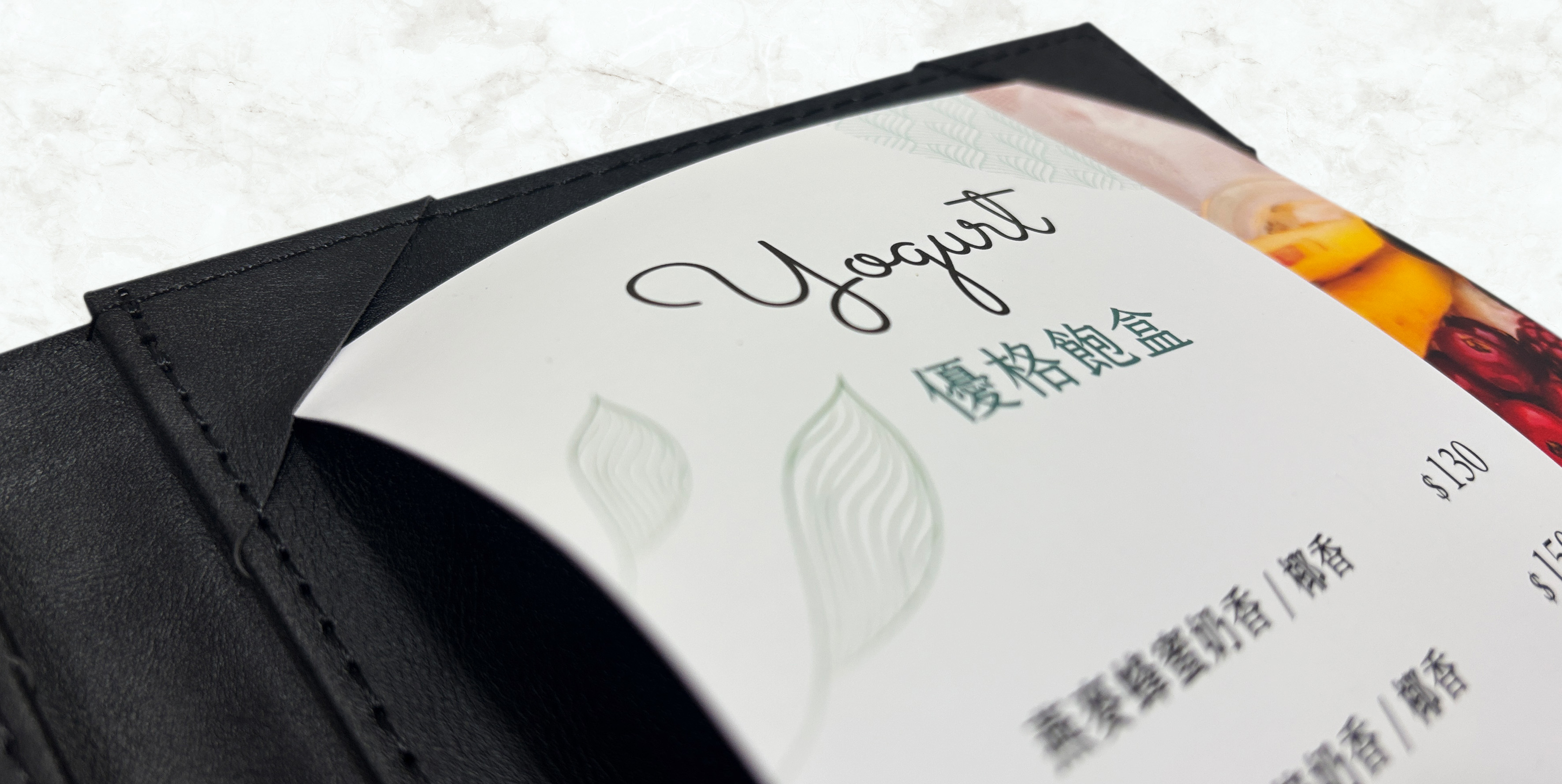 ▼實際內頁紙張與印刷方式,可依品牌定位、菜單更新頻率與使用情境,